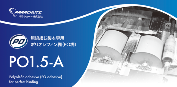 パラシュート株式会社は、北米でスタンダードなフーラー社が販売しているPO糊に注目をしました。PO糊はEVA糊より強度を高めることが可能であり、EVA糊より糸曳きの軽減が見込めるため機械内部を汚すことが少なくなるため、機械止めた清掃が減ることにより、結果として無線綴じ機の稼働率を上げることが可能となります。